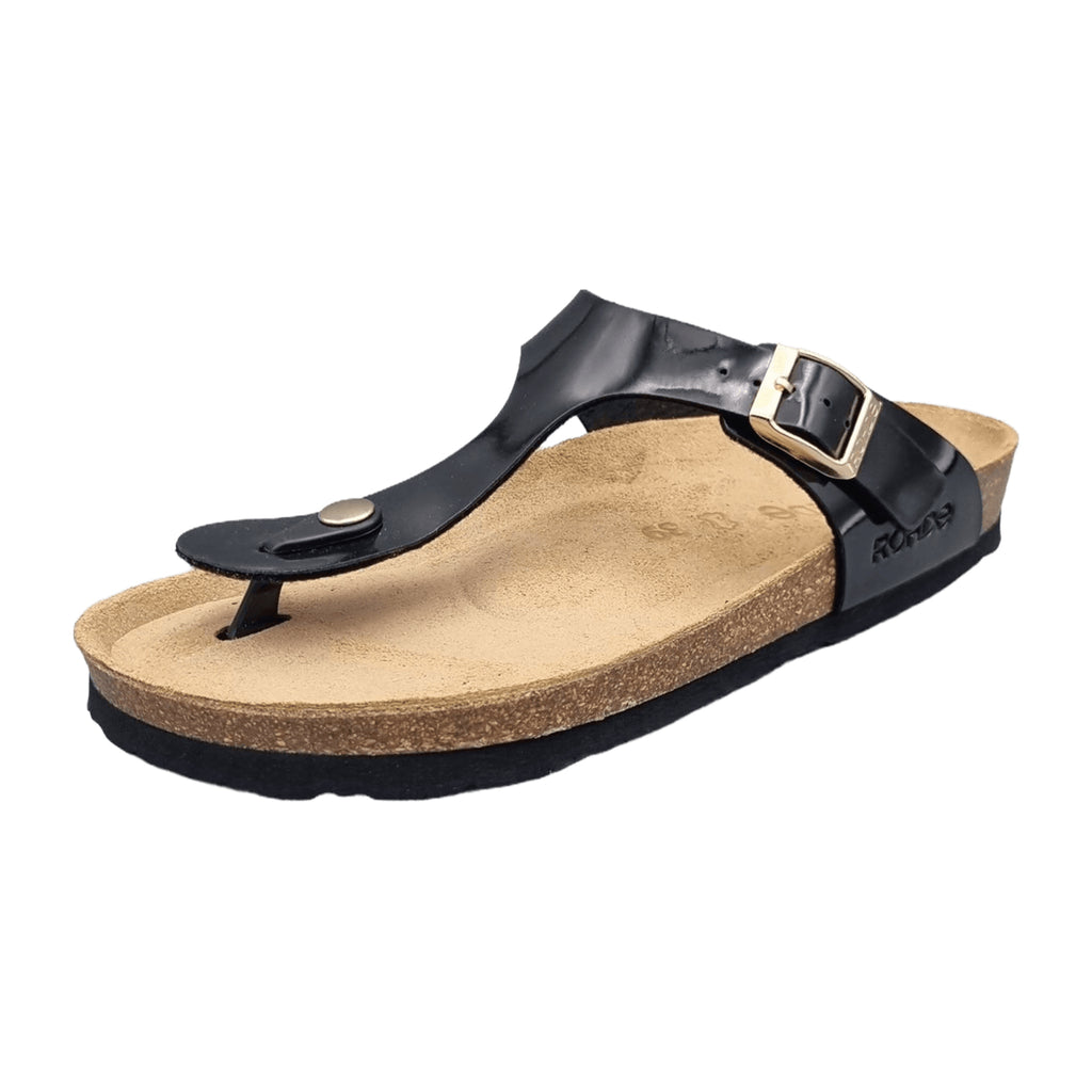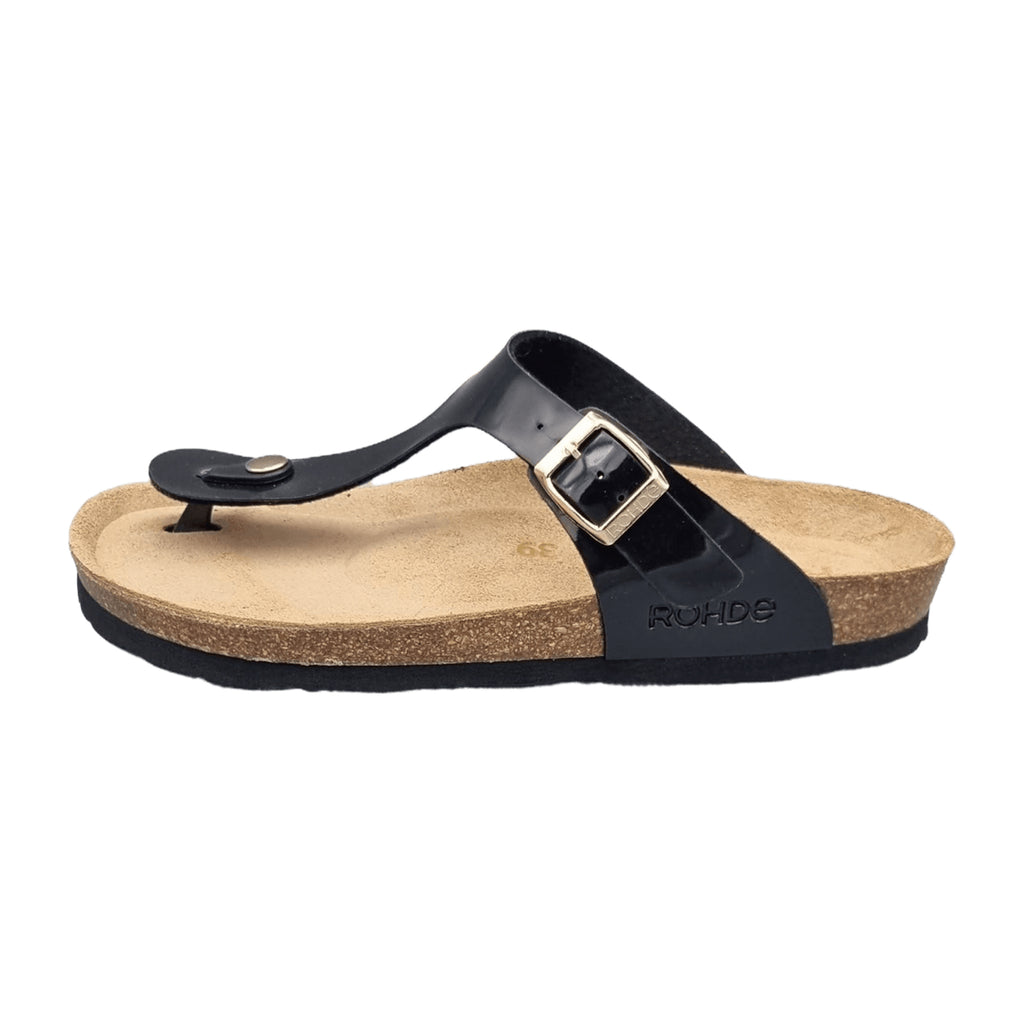 Rohde Women's Black Thong Sandals with Buckle Closure Patent Leather