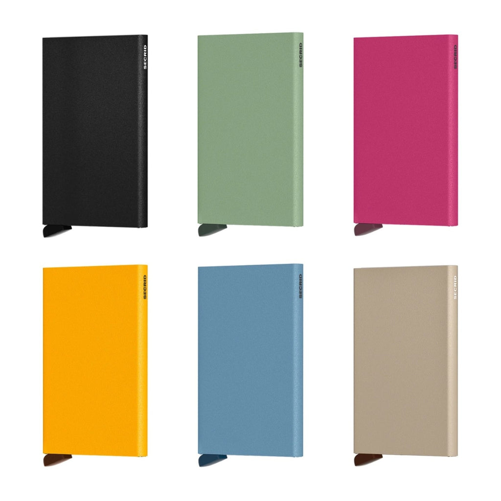 The Secrid Cardprotector may develop dents and scratches over time despite its powder coating. This is not considered a defect, but rather part of the unique character of an aluminum product. Light dirt can be removed with a damp cloth.